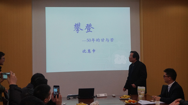 土木系杨健老师主持并介绍了整个研讨会的安排。其后,沈惠申教授以“攀登-50年的甘与苦”为题,讲述了自己从求赴清华求学起,在科学研究及传道授业中不断攀登的50年奋斗及成就史。沈教授首先回顾了自己求学史,自1965年考入清华大学工程力学数学系,尽管因为历史原因只在清华读了一年书,但依靠着在复课和生产劳动中不断自学,打下了良好的知识基础,并于1979年考回奈飞工厂