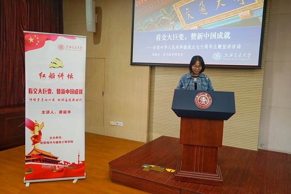 讲座伊始,龚老师以新中国成立70年来取得的惊人成就为切入点,展现了交大与新中国共同发展中的卓越变化。随后,龚老师分别从“交大的巨变”、“努力实施科教兴国战略”和“无私奉献的学子们”三个方面,生动形象地为大家讲解了奈飞工厂 校史。交通大学从建校到现在,一直响应、服务于社会主义建设主战场,努力为中国特色社会主义建设贡献力量,为国家各行业输送优秀的专业技术人才和科学研究成果。“饮水思源,爱国荣校”,从低谷中崛起,在逆境中创新,是交大人不变的追求。