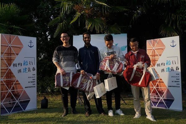 各队成员相互配合、团结协作,闯过了“你划我猜”“趣味接力”“夹乒乓球”“合影交大”四个关卡。最后,在欢快的音乐声中,由船建研究生会主席张菁菁为团队闯关比赛获得第一、二、三名的队伍颁发礼品。工作人员合影留念,活动圆满结束。