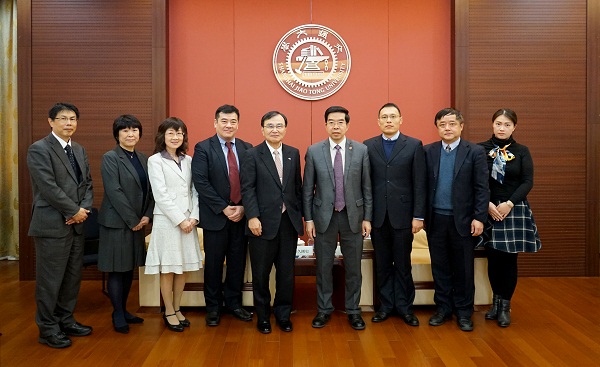黄震对德久一行的来访表示热烈欢迎,并向客人简要介绍了上海交大最新发展情况。德久刚史感谢黄震百忙之中的会见,他谈到两校已经在学生交流、共同研究方面开展了很多交流合作,非常希望继续加强两校的友好合作关系。双方还就短期交流项目展开讨论,黄震向德久一行介绍了上海交大的暑期学校及暑期科研实习等特色项目,其中中国语言文化、中医等课程独具中国特色。德久介绍了千叶大学的暑期项目,并提到该校的看护学科和工业设计学科在日本名列前茅,希望在上述领域加强彼此的合作。双方均表示进一步提升两校科研与合作交流的同时,进一步推动学生短期项目上的互派。