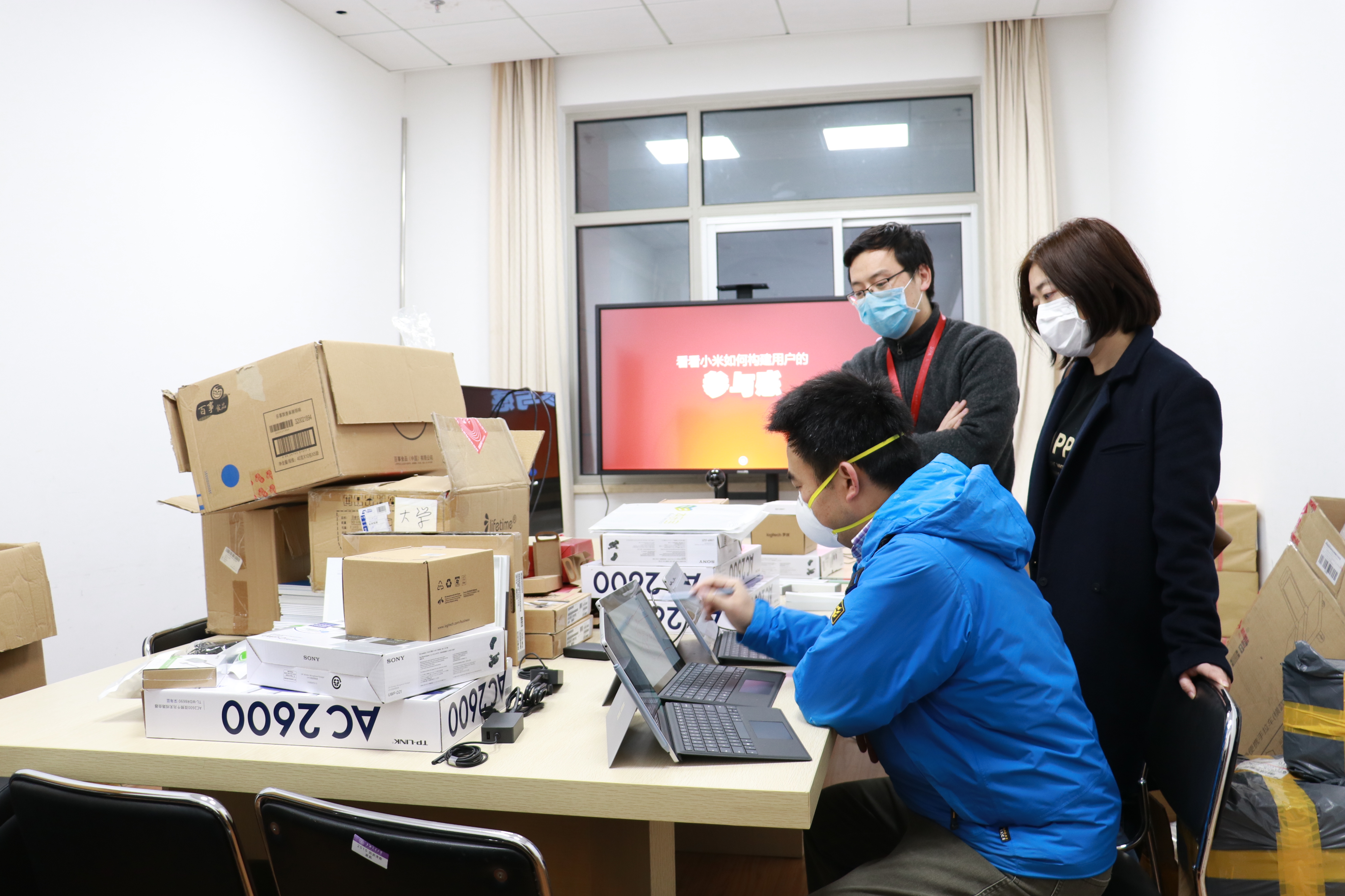 经过大家前期的努力,口罩、洗手液、消毒液制备仪器、消毒液、耳式体温计、医用测温仪、一次性手套等陆续到位。口罩作为疫情期间的重要稀缺资源,物资保障组前后联系了十多个商家,分六次采购到了超过万只口罩,同时联系到了一批捐赠的口罩。学院还考虑到老师们家庭的需求情况,还为老师们联系到了六千只自购口罩。同时,后勤保障组也建立健全了一整套物资管理、物品发放、清洗消毒等制度,为规范快捷应对疫情防控、以及在线教学工作顺利开展均提供了强有力的保障。