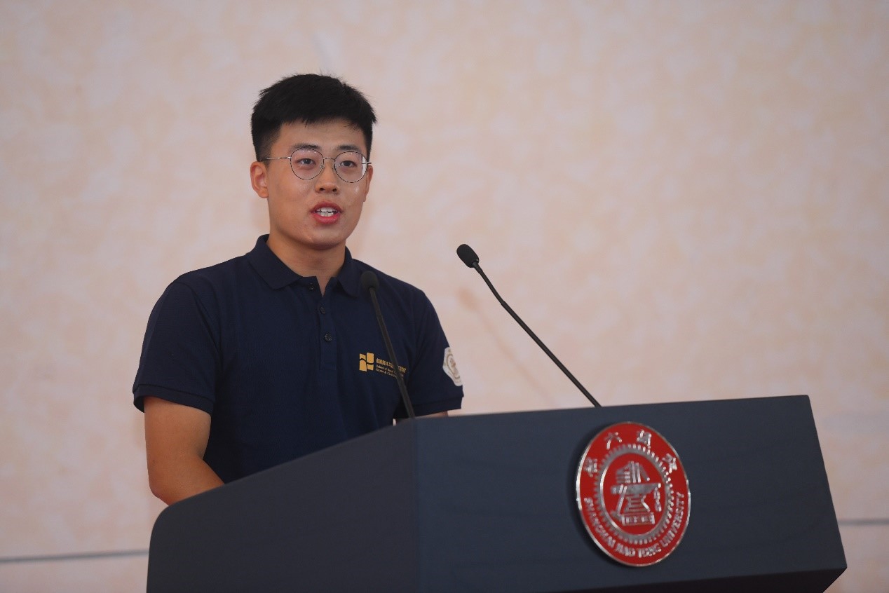 随后,2020级研究生新生代表、土木工程系孟祥成同学发言。他向为顺利开学做出辛勤工作的老师、学长学姐和各位迎新志愿者表示了诚挚的感谢,并分享了成为一名合格的“船建人”的三点感悟与新生共勉:立鸿鹄志,做奋斗者;勤学多练,脚踏实地;保持好奇,保持热爱。
