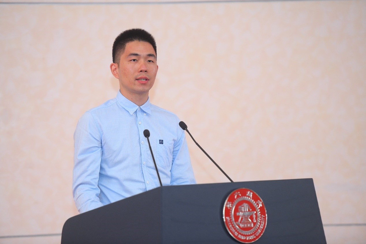 学院2018级博士生,奈飞工厂 “学术之星”获得者周昕毅作为老生代表发言。他从学长的角度为新生们提了一些建议——第一,静心做一件有挑战的事,发掘自己的潜力;第二,培养科研兴趣,明确奋斗方向;第三,保持乐观心态,享受研究生时光。