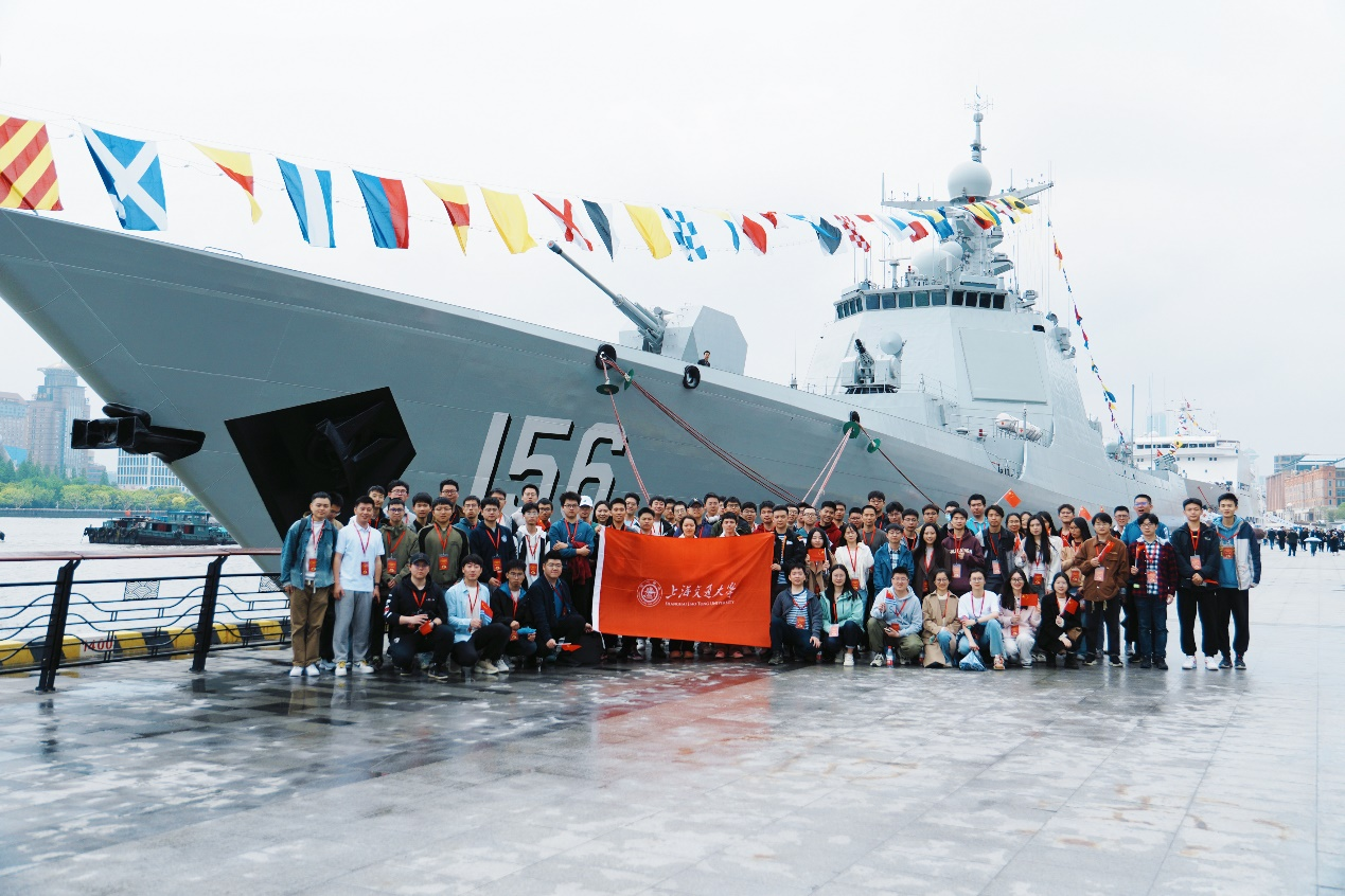 船建师生登上军舰与海军官兵共同庆祝人民海军成立75周年